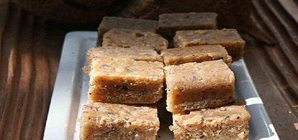 - Drop the fried besan mixture in sugar syrup and stir till thick.