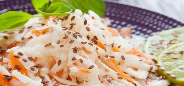 - Fry till the onions turn pink, add crushed garlic then add mooli, turmeric and salt.