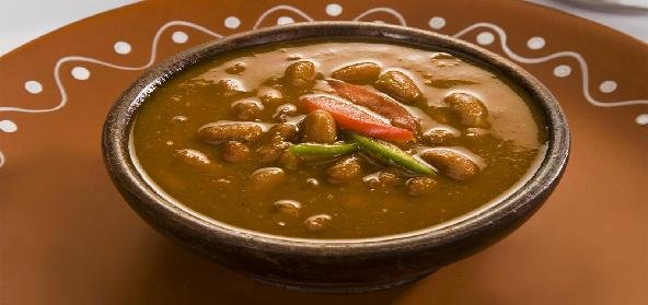 1. Soak rajma in boiled water for about 45 minutes. Pressure cook rajma with salt, red chilli powder, garam masala powder, turmeric powder and salt till done.