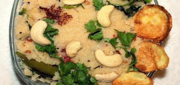 - Heat 1 tsp of oil in a kadai/pan and fry rava for 5 minutes. Keep it aside.