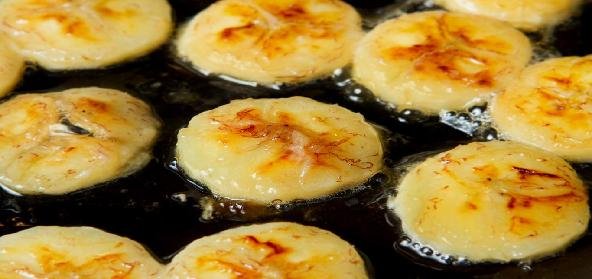 - Add some more oil and the banana slices, and fry till they become golden brown.