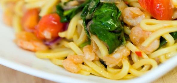 - Mix all vegetables and spaghetti, except onions.