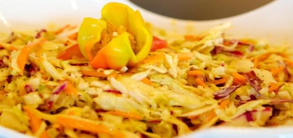 - Add coleslaw and toss gently to coat. The sprinkle sesame seeds and toss gently.