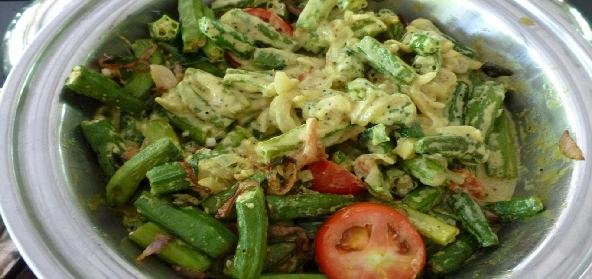 - Combine rest of the ingredients except the oil together and stuff the bhindi with the filling.