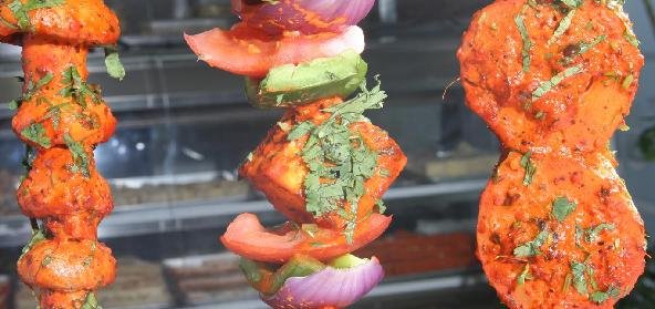 7. Grill the vegetables under a hot grill and sprinkle with chaat masala.