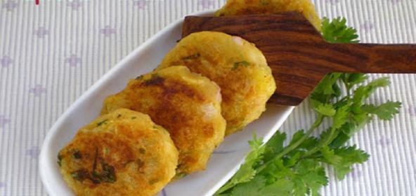 - Heat oil in a frying pan and arrange tikki and shallow fry on a low heat for 8 – 10 minutes till golden in colour on both sides.