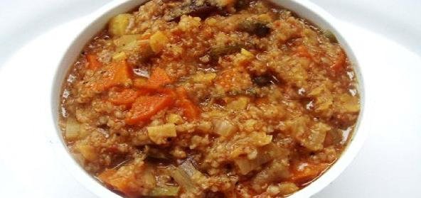 - Add the cooked broken wheat and dal mixture. Combine well and cook for a few minutes. Top it with the BBB powder and ghee and serve with any spicy side dish.